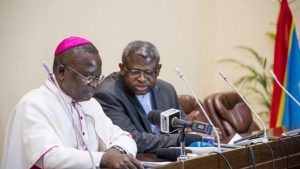 Le président de la Cenco, l’archevêque Marcel Utembi, et le secrétaire général de la Cenco, Donatien Nshole, le 30 décembre 2016 à Kinshasa en République démocratique du Congo.