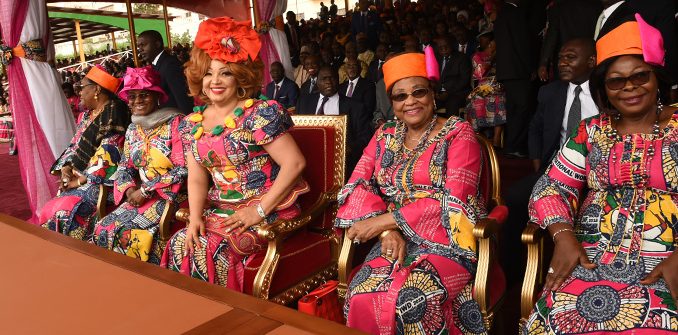 La Première Dame du Cameroun, Madame Chantal BIYA, a présidé le 8 mars 2018 au Boulevard du 20 mai à Yaoundé, le défilé marquant la célébration de la 33ème édition de la Journée internationale de la femme. Une journée placée sous le thème : « Intensifier la lutte contre les discriminations à l’égard des femmes, renforcer le partenariat pour accélérer le développement durable ». Près 70 000 femmes issues de toutes les couches sociales en uniforme de fête, le célèbre “pagne du 8 mars“, ont battu la pavé au cours d’un défilé impressionnant de près de trois heures devant une assistance joyeuse.