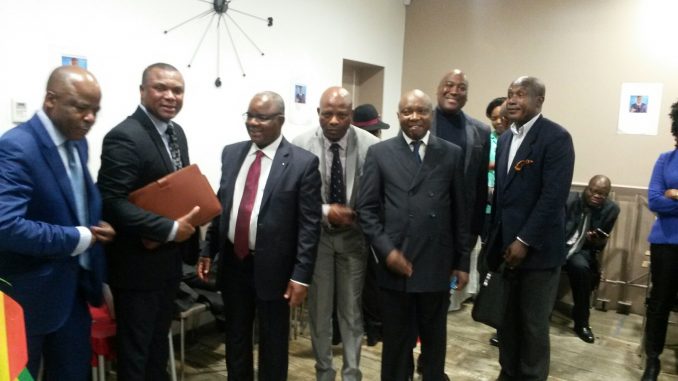 Crédit photo : Francis Mouketo, président de l’ACB-J3M-France et Thierry-Paul Ifoundza, secrétaire général, entourés des intervenants à la conférence / AFC