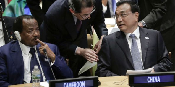 Paul Biya, le président du Cameroun, aux côtés de Li Keqiang, Premier ministre chinois, lors de l’Assemblée générale des Nations unies, le 20 septembre 2016. © Julie Jacobson/AP/SIPA