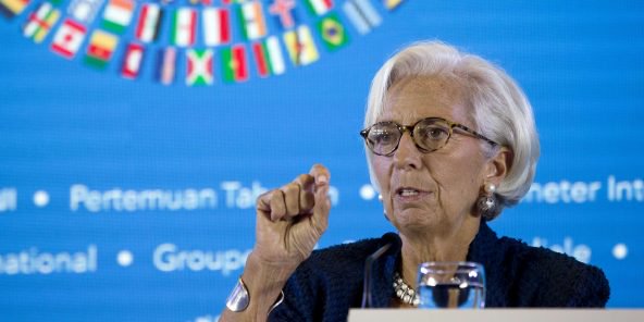 Christine Lagarde à la réunion annuelle du FMI et de la Banque mondiale, à Bali, le 11 octobre 2018. © Firdia Lisnawati/AP/SIPA
