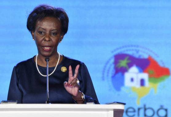 Secretary General of the Organisation Internationale de la Francophonie (OIF) Louise Mushikiwabo holds a press conference after the closing of the 18th Summit for French-speaking countries in Tunisia’s island resort of Djerba, on November 20, 2022. Facing calls to do more to resolve global crises, the world’s French-speaking leaders met in Tunisia to discuss growing instability and popular discontent in Francophone Africa. (Photo by FETHI BELAID / AFP)