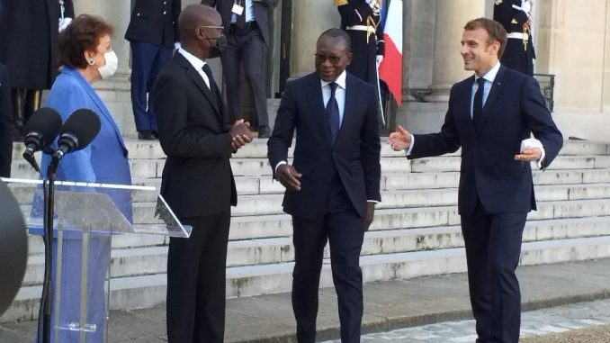 Emmanuel Macron a reçu Patrice Talon, son homologue béninois, en cette matinée du 9 novembre au Palais de l’Elysée pour officialiser et rendre effective la restitution des 26 oeuvres des trésors d’Abomey expropriées au Bénin et jadis exposées au musée du Quai Branly-Jacques Chirac. Patrice Talon est donc venu récupérer les oeuvres pour repartir avec elles aujourd’hui même. Le président béninois et les oeuvres d’art arriveront le lendemain 10 novembre à Cotonou, où elle seront “célébrées” au même titre que la France.