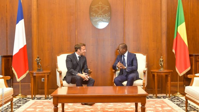 Avec le Chef de l’État béninois, le Président français a discuté lors d’un tête-à-tête, de l’évolution de la coopération bilatérale entre le Bénin et la France qui a connu ces cinq dernières années, selon le Président Patrice TALON, « un développement sans pareil » et marquée surtout par son caractère décomplexé. Au cœur des échanges, divers sujets d’intérêt dont la formation technique et professionnelle, la lutte contre le terrorisme, et la coopération culturelle entre les deux pays.